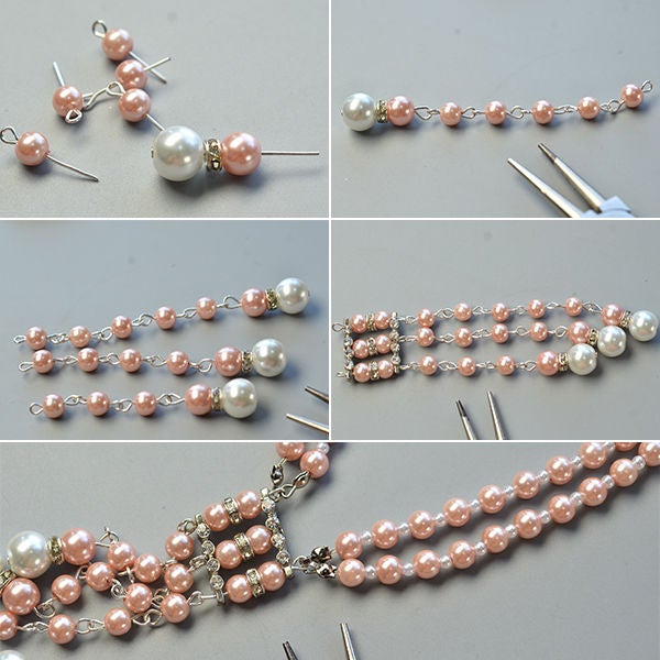 Украшения из жемчуга всегда впечатляют своей элегантностью и красотой, поэтому многие девушки не без оснований восхищаются ими. Сегодня мы расскажем вам, как правильно собрать бусы из жемчуга. Это жемчужное ожерелье с тремя подвесками можно одевать не только к любому наряд на вечеринку и на любое важное мероприятие, но и каждый день, на работу и в офис. Оно подходит для многих стилей, а выглядит изящно и дорого. А еще вы можете сделать его сами из понравившегося вам жемчуга, даже искусственного, или же переделать старые бусы для этого. Следуйте нашим инструкциям, ориентируясь на изображения к ним, чтобы научиться шаг за шагом создавать жемчужное ожерелье из трех нитей!