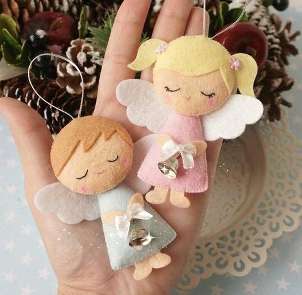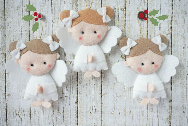 Такой декор будет очень кстати, в преддверии Нового года и Рождества: милыми маленькими рождественскими ангелочками из фетра можно украсить елку либо положить под нее как подарок. Также интересно и безопасно можно закрепить 3-4 мягких ангелочка на детском мобиле.
