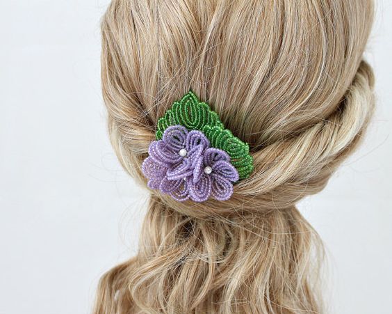 Достаточно актуальными аксессуарами являются гребни для волос, украшенные цветками из бисера. Смотрятся они поистине прекрасно, поэтому идеально дополнят разнообразные летние прически.