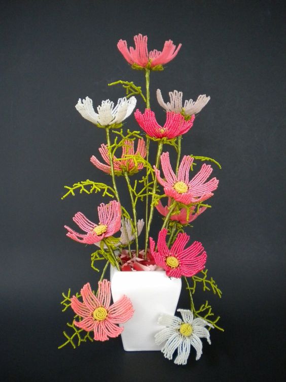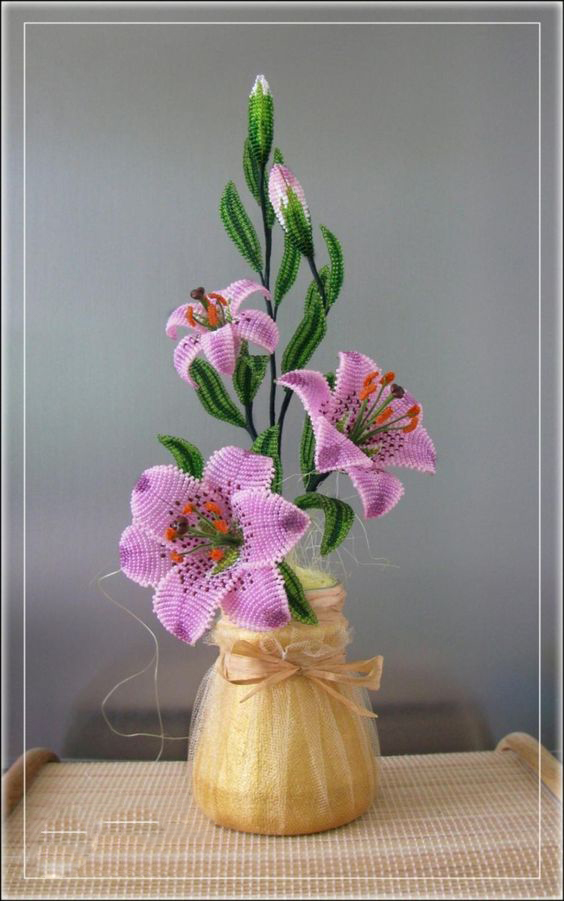 Бисер действительно подходящий материал для изготовления эффектных и красивых предметов интерьера. Цветочные композиции, сплетенные из бисера, смотрятся очаровательно и являются прекрасным декором помещений.
