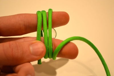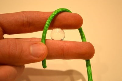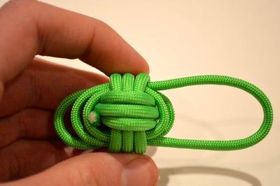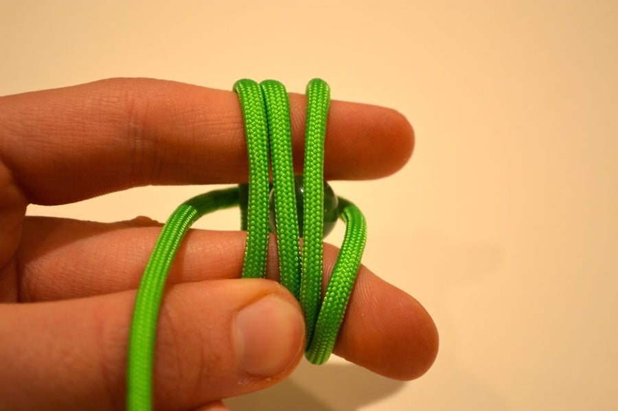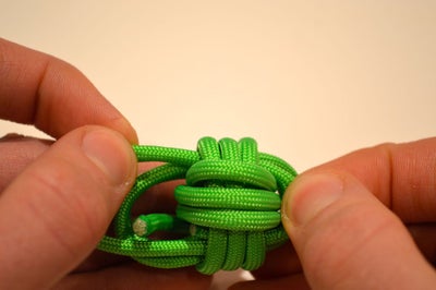 1. Удерживайте конец, которым вы работали, завязывая узел, одной рукой. Одновременно потяните второй рукой за второй конец паракорда. Не следует затягивать слишком плотно на этом этапе (предварительно в сердцевине узла можно расположить подходящий по величине металлический либо стеклянный шарик).
