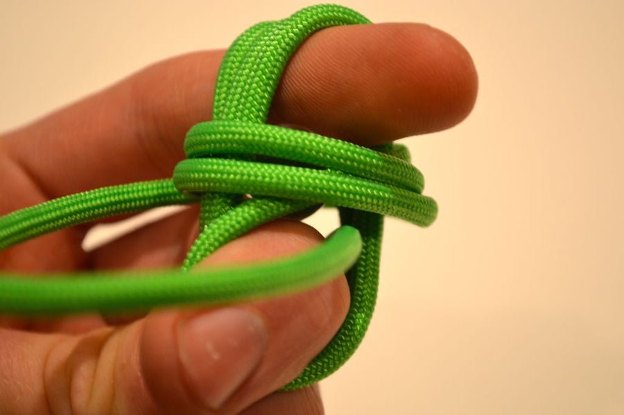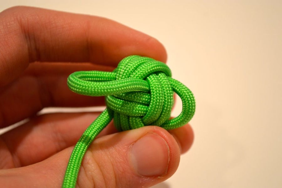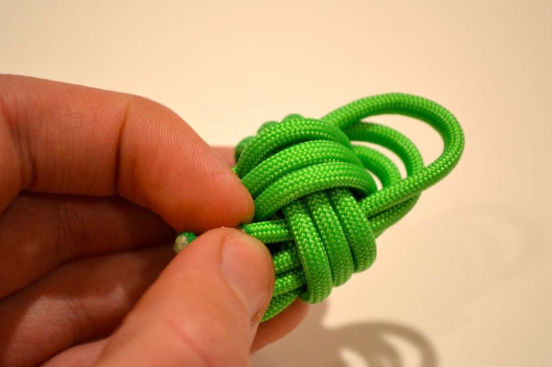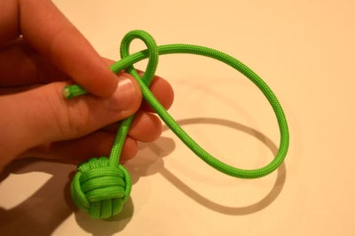 5. Затяните петлю, потянув за обезьяний кулак и большой конец шнура.
