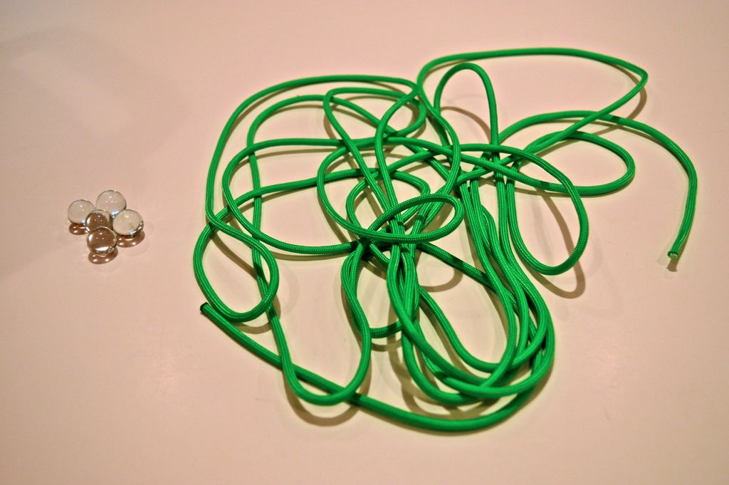 3. Сформируйте шнуром 3 последовательно и параллельно расположенных витка вокруг пальцев, удерживающих каменный шарик.