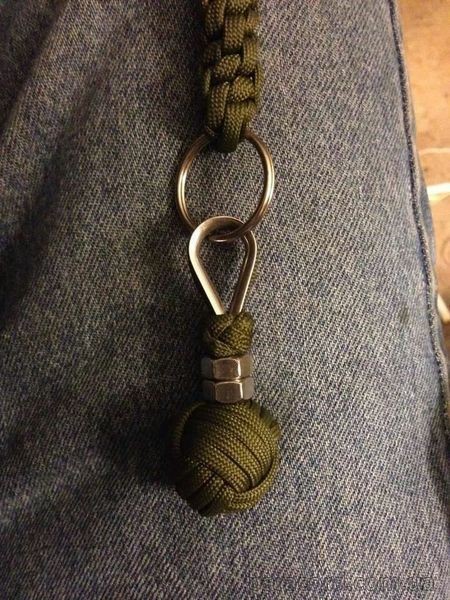 Завершенный брелок и можно прикрепить к кольцу для связки ключей, к рюкзаку или сумке. А еще можно сплести такие же брелоки для своих друзей и родственников в качестве сувениров. Ведь такой компактно заплетенный шнурок можно использовать в случае возникновения неожиданной ситуации, когда чтобы выжить, вам будет необходим паракорд.