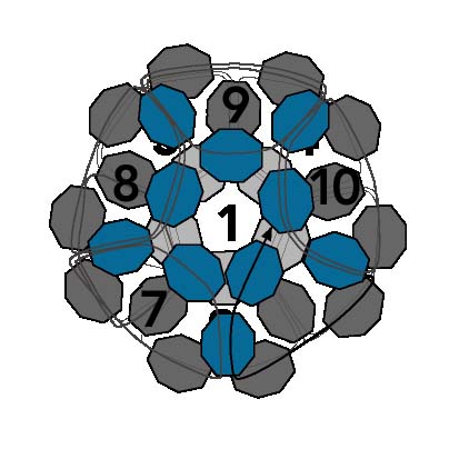 41. Далее соедините крайние ячейки. Для этого добавьте 5 бежевых бисеринок и проведите иглу сквозь две крайние из прозрачных бусинок нижней ячейки (смотрите на фото).