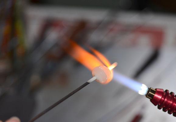 11. Нанижите 1 прозрачную бусинку и проведите иголку снизу вверх.