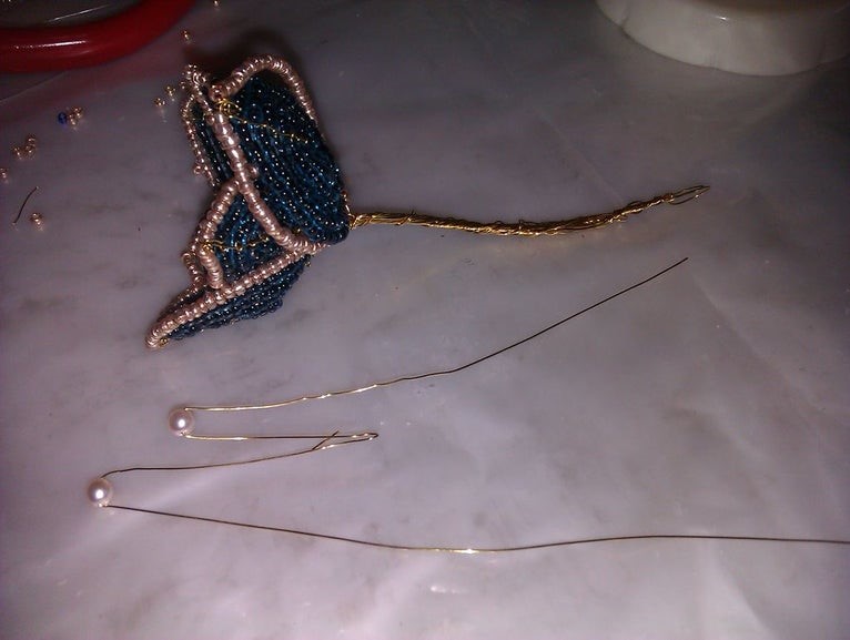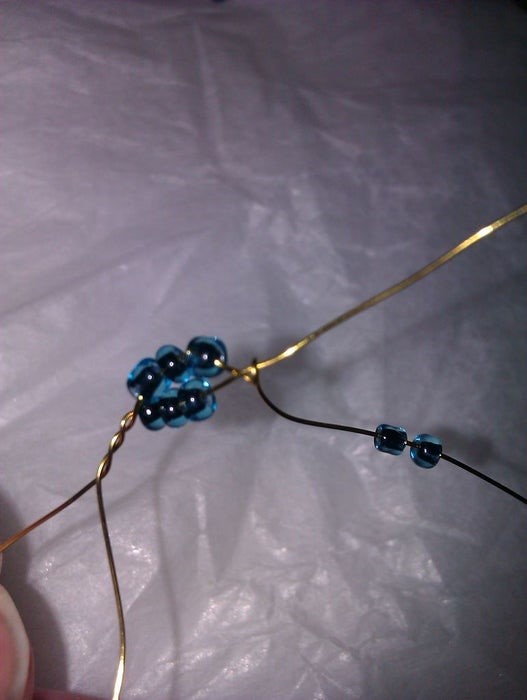 наденьте 2-3 бусинки на короткий хвостик проволоки, который остался возле петли