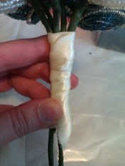 Вам нужно будет делать стебли (петли) на своих цветах подлиннее, особенно, если у вас большой букет цветов. Если вы обнаружите, что они недостаточно длинные, просто соберите всю лишнюю проволоку и вытяните ее в продолжение стеблей – прежде, чем наносить цветочную ленту.