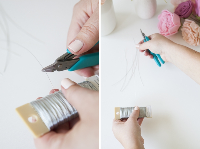 Когда вы останетесь довольны букетом, обрежьте все проволочные ножки, чтобы они соответствовали друг другу по длине.