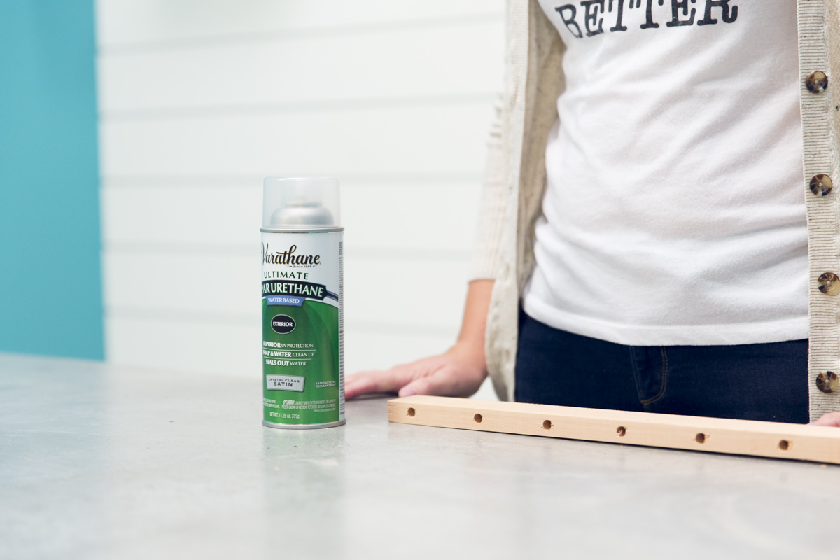 Зафиксируйте планку, а затем просверлите отверстия по меткам. Убедитесь, что вы сверлите прямо вверх и вниз, чтобы не пробивать борта. Отшлифуйте отверстия наждачной бумагой, а затем обработайте их лаком, обеспечив внутреннее покрытие каждого отверстия.