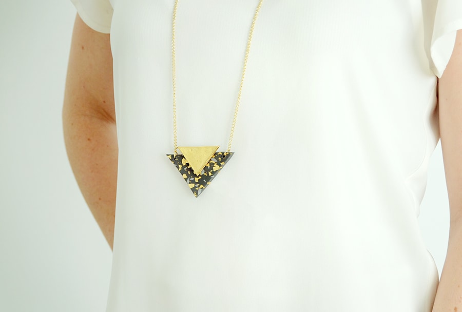 Любите рукодельничать с полимерной глиной или только хотите научиться с ней работать? Полимерная глина (также иногда называемая по названиям торговых марок, ее изготавливающих – таких, как Sculpey или Fimo) сама по себе имеет большой потенциал для самостоятельного использования при создании украшений, но мы решили, что она может хорошо сочетаться с сусальным золотом, так как металл не будет поврежден во время процесса изготовления. И мы придумали геометрическую подвеску, в котором плоское сусальное золото сочетается с полимерной глиной в виде его маленьких крапинок, чтобы создать треугольный кулон с разнообразной текстурой и блеском.