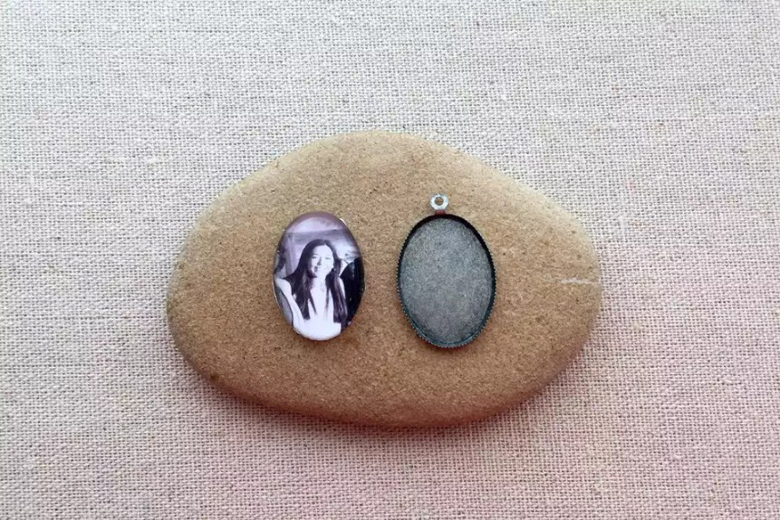 Чтобы сделать кулон с фотографией, напечатайте свой фотоснимок и отрегулируйте его размер с экспозицией так, чтобы они соответствовали очертаниям вашего кабошона. Интересной особенностью полусферических кабошонов является их способность слегка увеличивать изображение, делать его объемным.