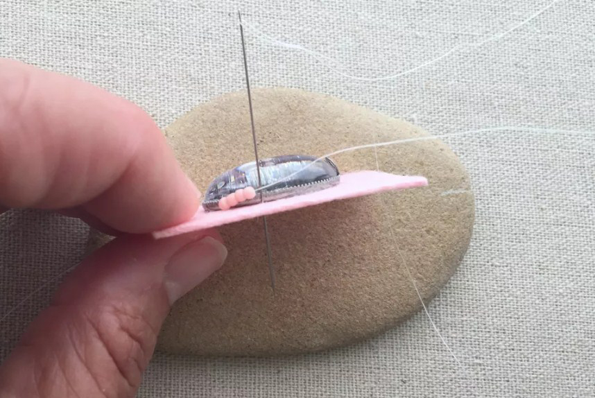 Наберите еще четыре бисеринки и пришейте к фетру.