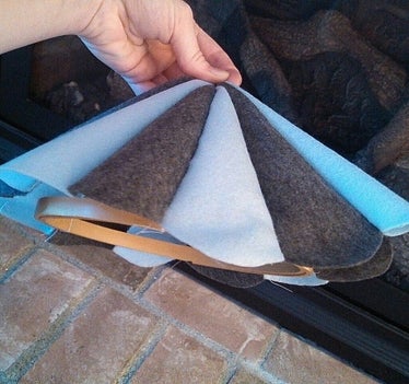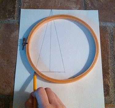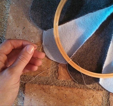Пришейте пяльца к внутренней части войлочного шатра, выполняя стежки во внутреннем углу каждого из сшитых сегментов шатра и плотно натягивая нить вокруг вышивальных пялец. Повторите стежок в одном месте несколько раз для надежности закрепления.