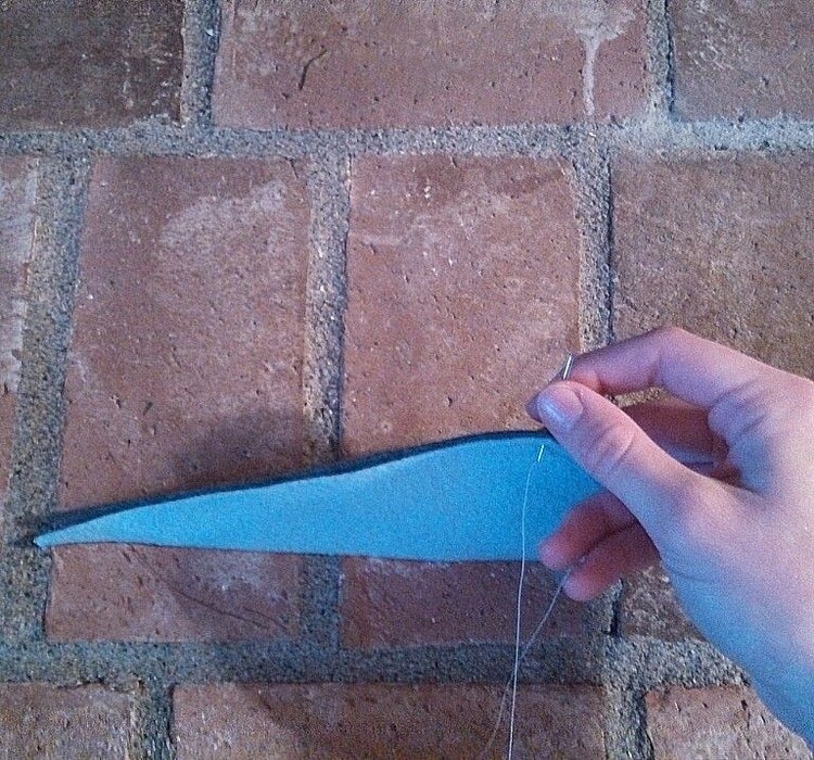 Сшейте их вместе по прямому краю деталей, начиная с дуги и заканчивая в вершине треугольника.