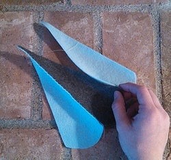 Нарисуйте полукруг в нижней части треугольника с радиусом около 2,5 см (см. фото). Используйте подходящий круглый шаблон, чтобы получить ровную дугу.