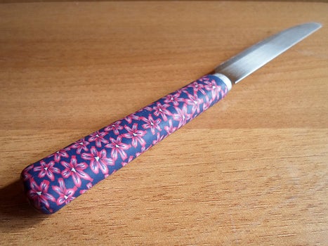 Теперь положите отрезанный кусок глины на рукоятку ножа и разровняйте его пальцами, чтобы он был как можно более гладким и плотно прилегал к ножу.