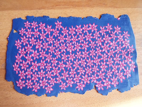 Поместите все цветочки рядом друг с другом на прямоугольный блинчик из голубой глины, как изображено на фото.