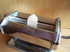 Пропустите их через машину для макаронных изделий по одному, начиная с более толстого размера, и постепенно пропуская через более тонкие размеры, пока блинчики не станут толщиной около 1,5 мм.
