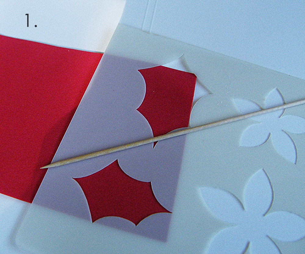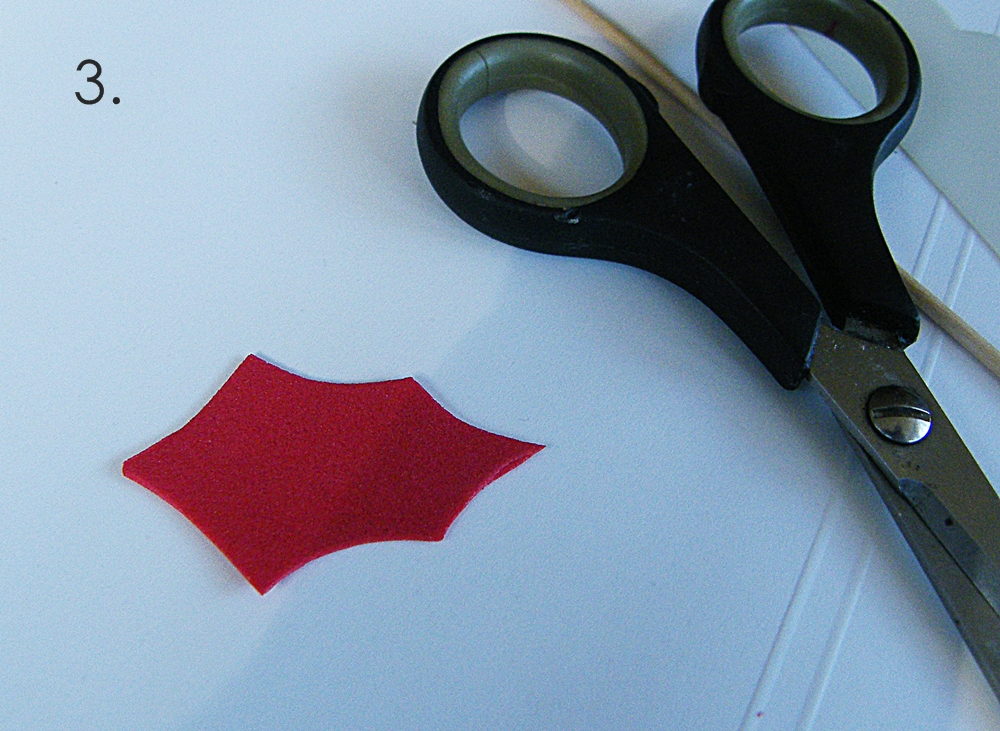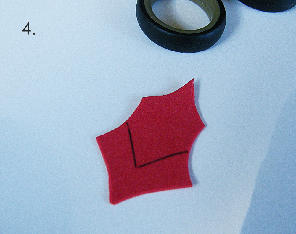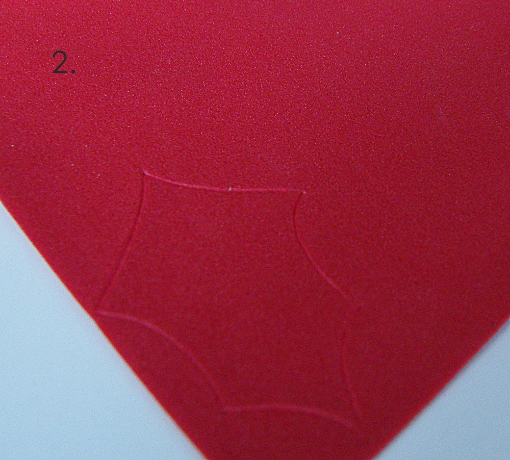 1. Нарисуйте зубочисткой, используя шаблон или трафарет, на фоамиране листик пуансетии меньшего размера.