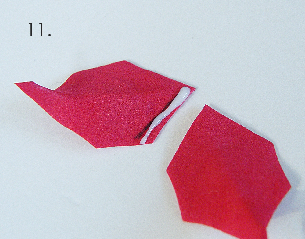 11. Далее будем склеивать лепестки. Мы будем использовать для этого горячий клей, только на фото вы можете видеть другие клеи, так как мы хотели показать вам, где именно мы применяем клей.