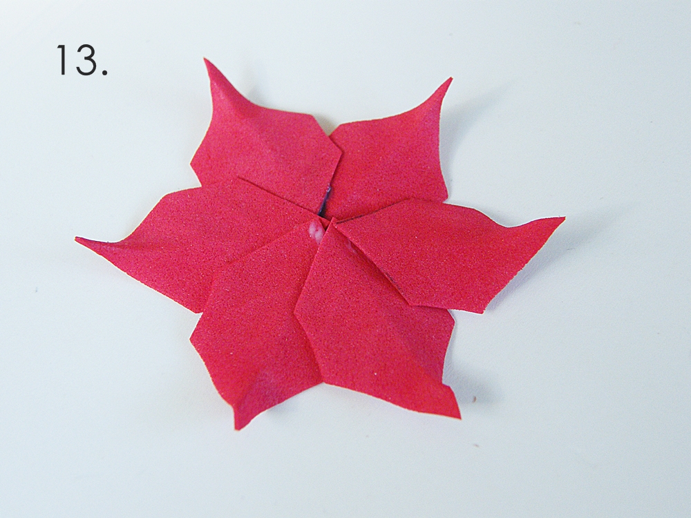 Теперь можно добавить глиттер или блеск, чтобы закончить ваш прекрасный цветок пуансетии.