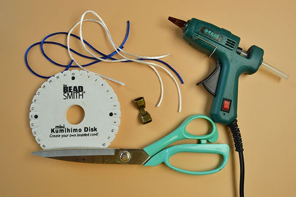 Шаг 1: приготовьте материалы и принадлежности, необходимые для плетения нашего голубого браслета дружбы в технике кумихимо: