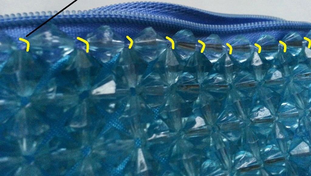 19. С помощью иглы и швейной нитки пришейте подкладку к крайним бусинам хрустального чехла, как показано на фото.