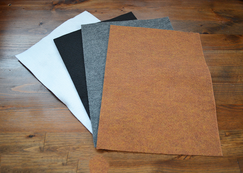 Листы серого, коричневого, черного и белого фетра