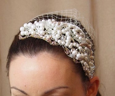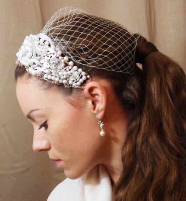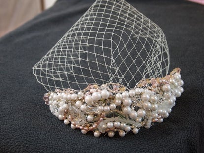Шаг 8: Готовый свадебный ободок из бусин с маленькой вуалью