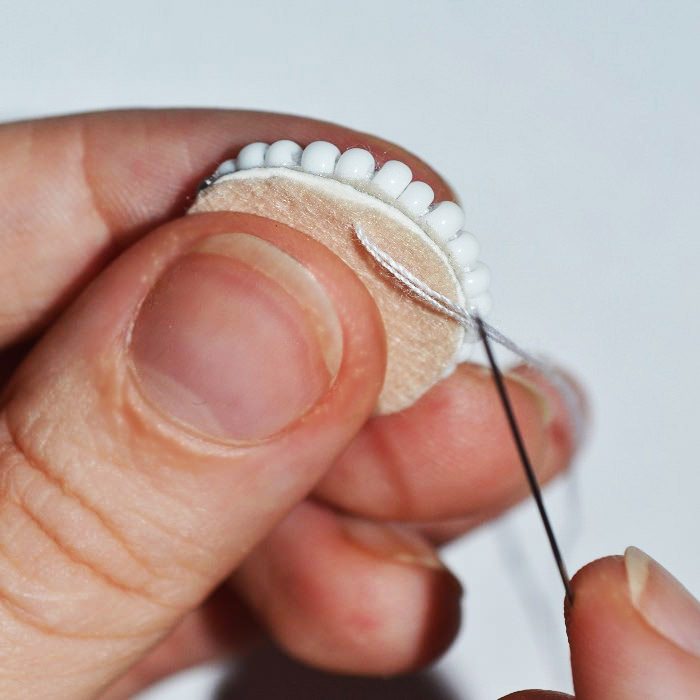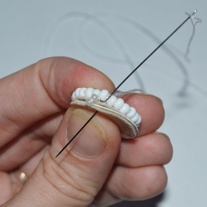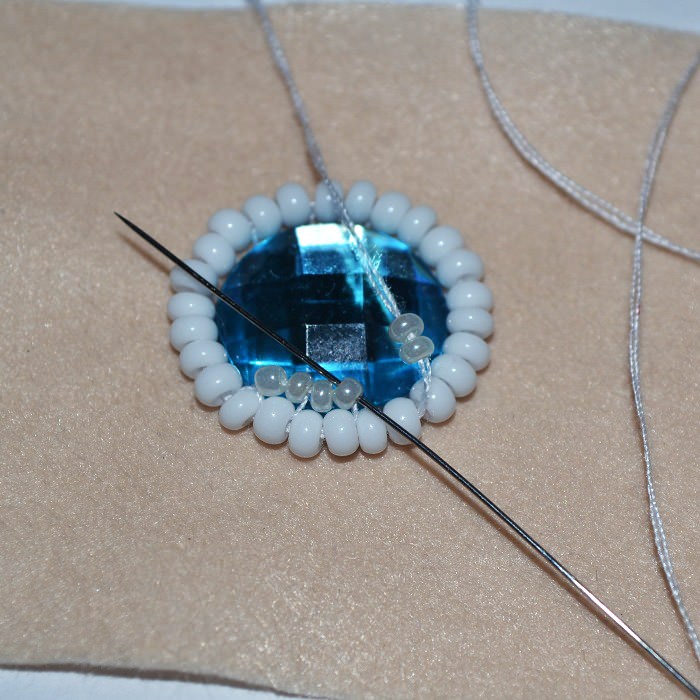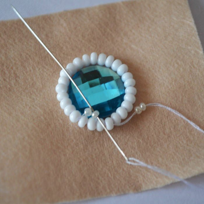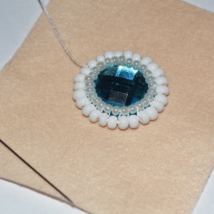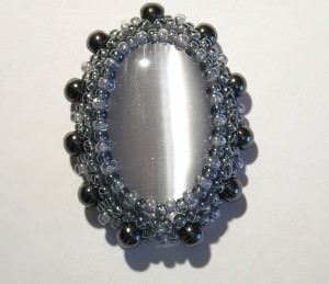 Кроме оплетки можно применить способ обшивания кабошона бисером.