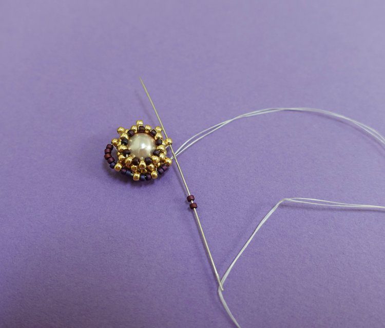 10. Далее переключитесь на бисер 15-го размера и добавьте еще один ряд с ним стежком пейот.