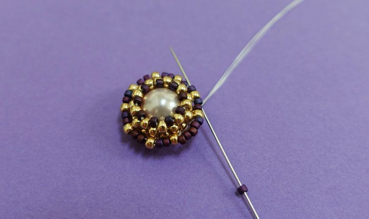 16. Пройдите иголкой с нитью через этот внешний круг бисера еще раз или два, а затем закрепите свою нитку, спрячьте ее и обрежьте ее хвосты.