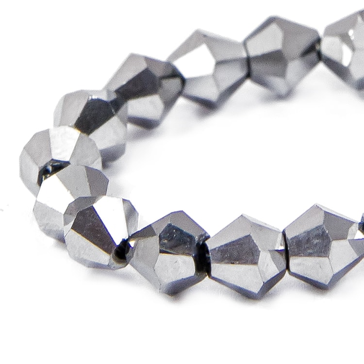 Стеклянные бусины часто делают в форме биконусов (ось отверстия в такой бусине проходит сквозь вершины конусов), гранёных шаров, ронделей (бусин с большим количеством маленьких граней), овалов, капелек и пр.