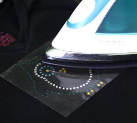 При покрывании значительных поверхностей термостразами целесообразнее всего использовать утюг. При этом ткань аккуратно разглаживают на доске, и наносят на нее узор, по которому будут приклеиваться кристаллы. Затем их выкладывают клеевой плоскостью вниз. Поверх кристаллов кладут белую бумагу либо нелиняющую хлопковую материю.