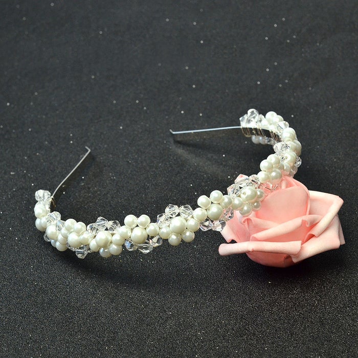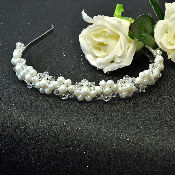 Готовый свадебный обруч с белыми жемчужинами имеет такой окончательный вид: