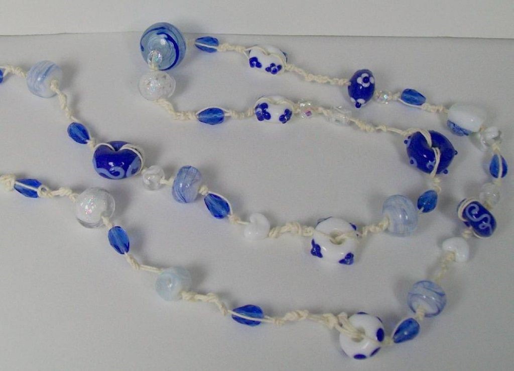 Эта простая техника позволяет изготовить целый комплект, состоящий из модных ожерелий с браслетами и серьгами. Подобные украшения гармонично украсят ваш модный образ, будь то стиль ориентал, бохо-шик, этно, хиппи либо кантри. Достаточно равномерно распределить их на шее – и ваше колье готово.