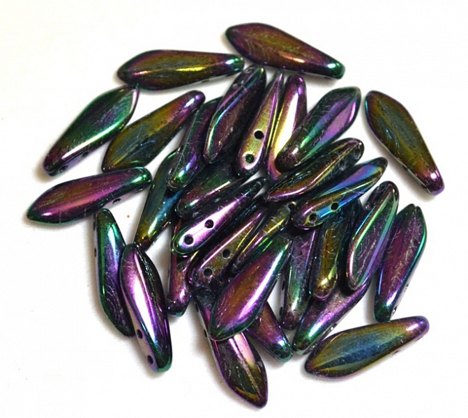 Среди рукодельниц они называются по-разному: даггерсы и кинжалы, лепестки и язычки либо копья. В них есть одно или пара отверстий, расположенных в верхней части бусинок. Обычно из них выполняют удивительной красоты цветки либо подвески.