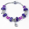 Браслет Евробусины из сплава, С бусинами из латуни и лэмпворк, Цвет: Сиреневый, Размер: 18см, (УТ100006429)